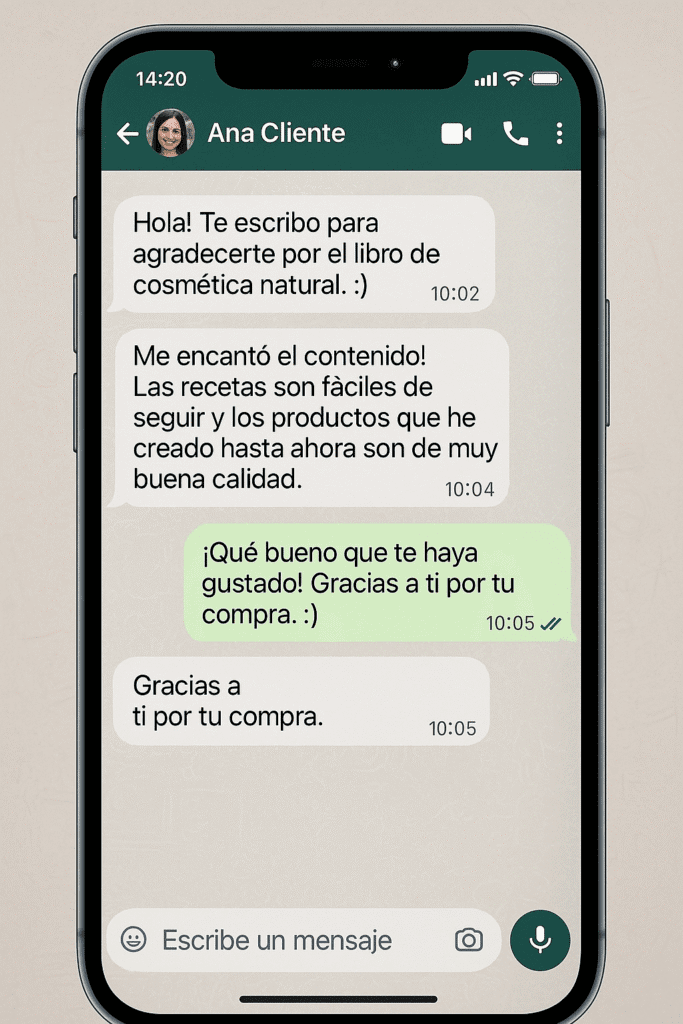Después de realizar el pago, el contenido llegará directamente a tu correo electrónico. Todo quedará disponible al instante para que comiences hoy mismo tu aprendizaje en Cosmética Natural desde casa.