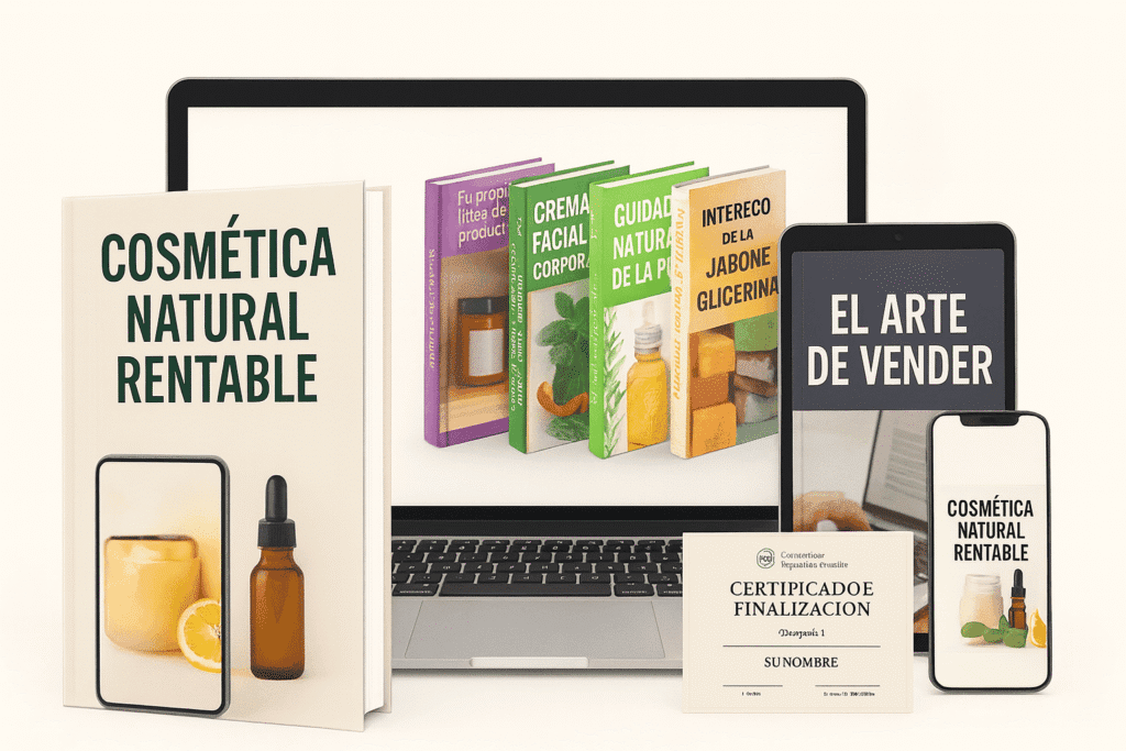 ✔️ Obtendrás los conocimientos que necesitas para destacar en el mercado de la cosmética natural y comenzar a generar ingresos extras vendiendo tus creaciones.